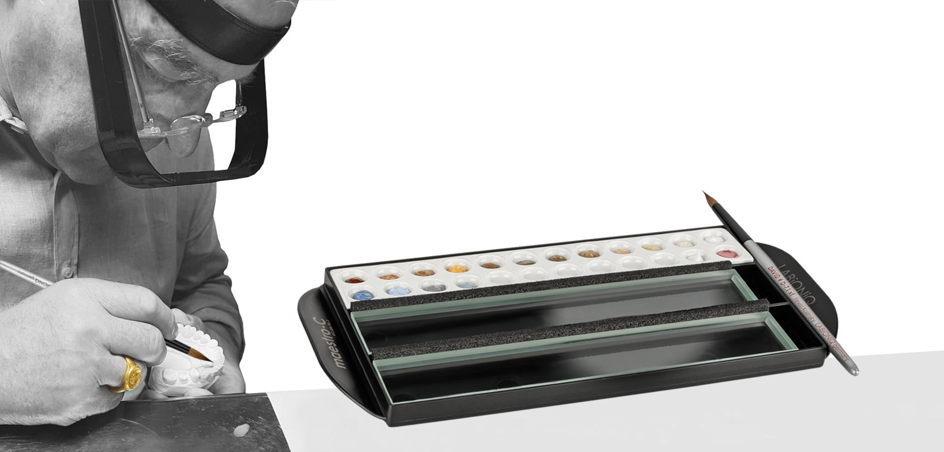 Optimaler Staubschutz durch dicht schließenden Deckel, der auch zum Ablegen von Pinseln und Instrumenten geeignet ist.